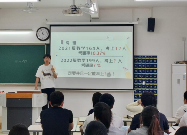 为传承优秀学风,激励学子精准规划职业发展路径,taptap点点体育数学专业于5月26日、27日在1号教学楼召开2026届毕业生“考研、征兵动员大会”。会议以“榜样引领方向,奋斗书写青春”为主线,通过总结2025届毕业生升学入伍的出色成绩,为2026届学生锚定目标、明晰方向。全体2026届数学专业毕业生参会,此次会议由数学专业辅导员郭鸿鑫、吴天一分场主持。