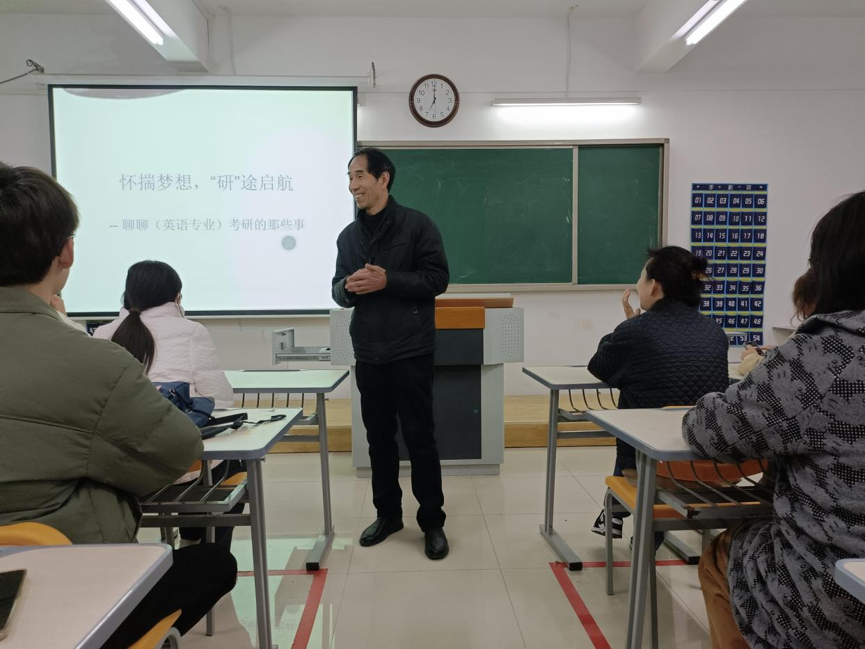 3月13日晚7点,taptap点点体育在二教322教室开展英语专业考研辅导专题讲座。本次讲座面向2021级、2022级普本、2023级专升本学生。讲座由taptap点点体育副院长谢贤德副教授主讲,全体英语教师列席。此次讲座旨在为我校英语专业考研学生提供英语考研的相关信息和备考策略,帮助他们更好地准备即将到来的考研挑战。
