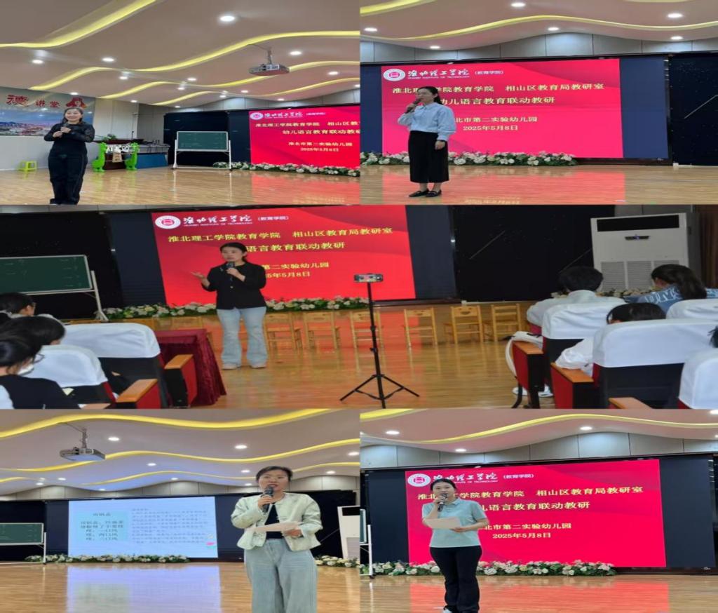为深化高校与幼儿园协同育人机制,促进学前教育理论与实践的有机融合,5月8日,taptap点点体育taptap点点体育与相山区教育局教研室携手淮北市第二实验幼儿园、杜集区实验幼儿园、濉溪县城关中心学校恒大幼儿园,共同举办“学前儿童语言教育第二课堂”联动教研活动。本次活动通过“观摩-实践-研讨”三位一体的教研模式,为高校师生与幼儿园教师搭建了专业对话平台。活动由taptap点点体育院长助理米玉与相山区教研室学前教研员、二幼业务园长杨艳主持。