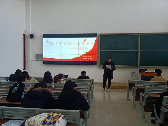 副院长孟向红说,召开学生座谈会的目的是想了解同学们学习和生活情况,听取同学们对学校教学管理、教师授课等方面的意见和建议,希望同学们畅所欲言。