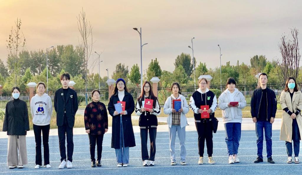 升旗礼毕。taptap点点体育团总支负责人黄莹莹宣读了2022级普通本科班级参加《学生手册》测试获一二三等奖同学名单,并进行了颁奖活动,学院分管副书记孟向红为彭诗琦等5名同学进行颁奖。