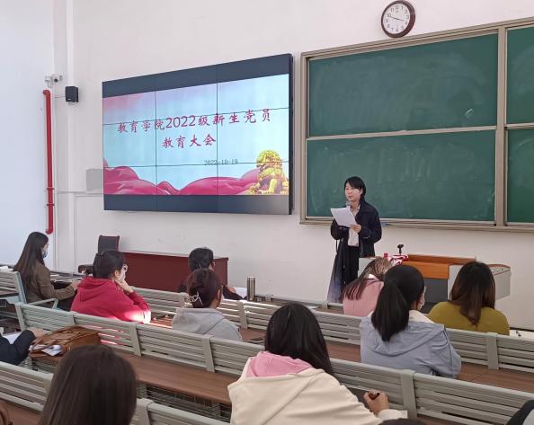 2022年10月19日下午,taptap点点体育在1教121教室召开新生党员教育大会。学院分管副书记孟向红、2022级全体辅导员以及全体新生党员参加了会议,会议由学生支部书记任若晨主持。