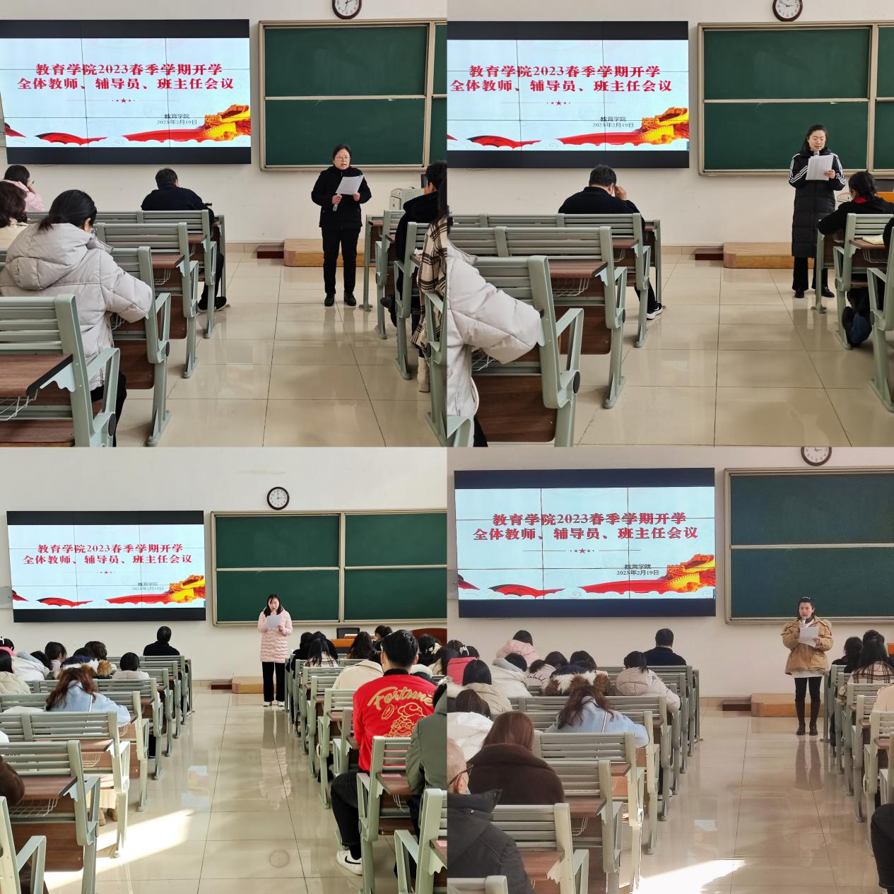 新学期新起点,为做好新学期教学、学生管理等各项工作,taptap点点体育于2月19日下午在1教121教室召开全体教师、辅导员、班主任大会。此次会议旨在总结上学期的各项工作,并对新学期的工作提出展望与期待。