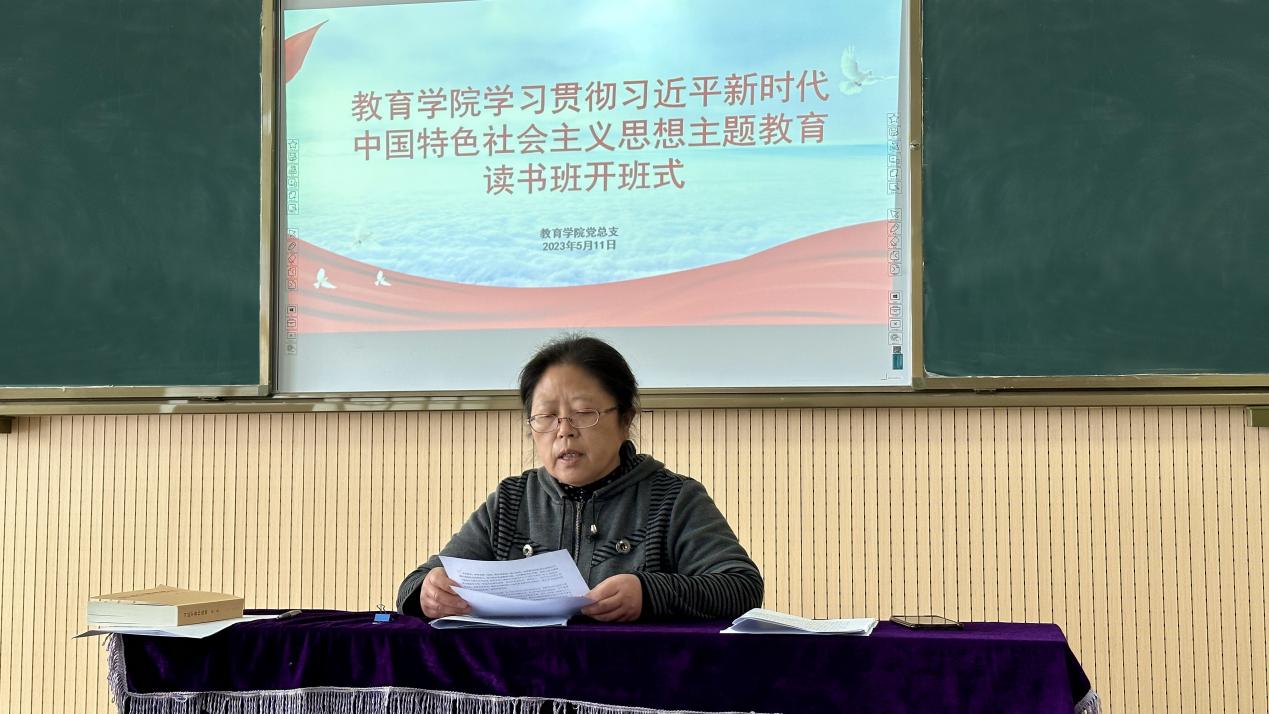 她要求各党支部按照学校的要求,充分认识举办读书班的重要性和紧迫性,拟订好主题教育读书班的学习计划,创新学习形式,坚持学思用贯通、知信行统一,牢牢把握“学思想、强党性、重实践、建新功”的总要求,认真组织支部党员的主题教育活动,通过主题教育,进一步增强对党的价值追求和前进方向的高度政治认同,深刻领悟 “两个确立”的决定性意义,增强“四个意识”、坚定“四个自信”、做到“两个维护”。