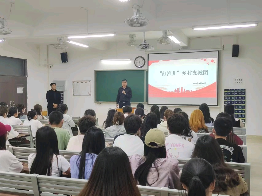 2023年5月26日下午,taptap点点体育在1教415教室召开“红淮儿乡村支教团”成立暨动员大会,会议由支教团成员刘双同学主持,学院院长王家云、副院长孟向红,红淮儿社团指导教师张晓婷、陈慧慧及支教团的全体成员参加了会议。