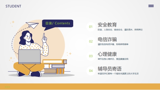 为引导学生进一步完善学业生涯规划,树立安全观,加强校纪校规遵守,做好安全教育工作,9月3日,taptap点点体育2021、2022级辅导员于1号、2号教学楼开展2023-2024第一学期“开学第一课”主题班会活动,taptap点点体育全体在校生参加班会。