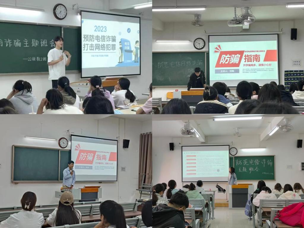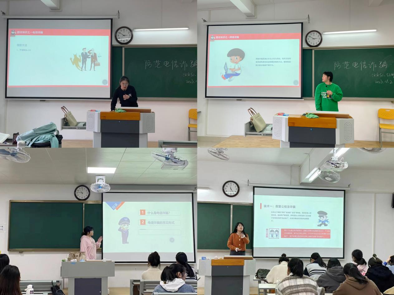 主题教育活动由各班级辅导员老师主持,老师们结合近期校园电信诈骗的特点,以PPT形式再次向同学们普及了什么是电信诈骗、电信诈骗的特点是什么、诈骗分子如何利用人们的心理弱点以及同学们应该如何防范应对。活动中同学们再次学习了《防范电信网络诈骗宣传手册》,进一步增强识骗防诈的能力,掌握应对电信网络诈骗方法。