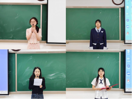 评委老师们对参赛选手进行认真打分和点评,不仅对选手们的朗诵基本功和情感表达能力给予肯定,也指出了选手们的不足之处,并提出合理建议。经过激烈的角逐,最终评选出23级汉文9班贾静茹、23级汉文3班张艳等7人获得一等奖;22级汉文1班陈佳佳、23级汉文2班喻思雅等14人获得二等奖;23级英语1班廖婉廷、23级汉文1班尹明阳等18人获得三等奖。