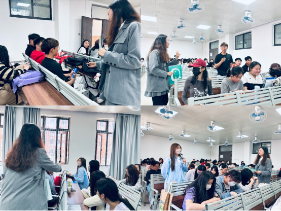 宣讲会上,李怡结合自身经历告诉同学们如何择业就业。她向同学们详细介绍了链家的概况、企业招聘计划、岗位职责、职业发展、薪资待遇和招聘政策等方面情况,并通过扫码互动小游戏、提问互动调动同学们的参与热情,现场解答了学生关于实习、就业等方面的疑惑。