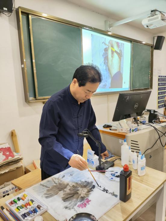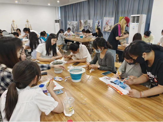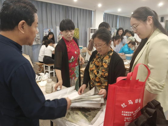 随后,马泰、李凌夫妇进行现场创作,指导学生体验纺织画的创作过程。学生们跃跃欲试,纷纷动手尝试,在布上创作出了各种图案的作品,对纺织画表现出了浓厚的兴趣。
